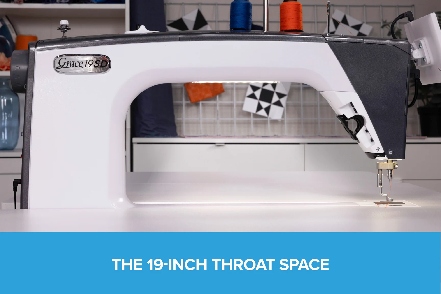 Professional-grade throat space in a home-friendly footprint | The full 19-inch throat gives you the same clearance as a professional long-arm, so large quilts and complex block designs flow freely; no cramped maneuvering, no compromises.