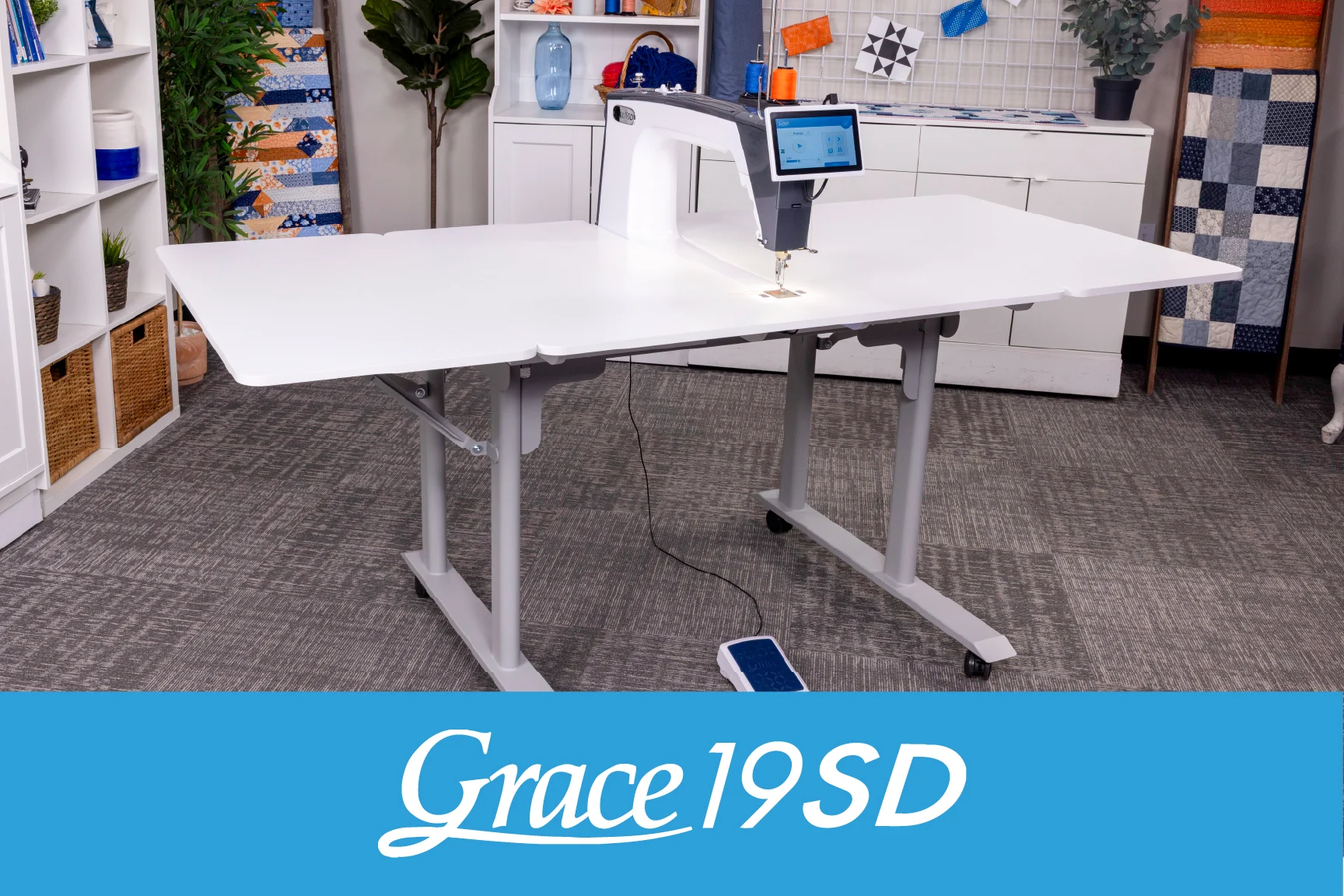 The Grace 19SD is the sit-down quilting system built for quilters who refuse to compromise. With 19 inches of throat space, a high-torque motor, and optical-encoder stitch regulation, it delivers the space and power of a professional long-arm from the comfort of your own chair. Paired with a modern ergonomic table, the 19SD transforms your home studio into a space designed for control, creativity, and pride in every stitch. Whether you're finishing a cherished project or pushing your craft further, the Grace 19SD meets you exactly where you are.