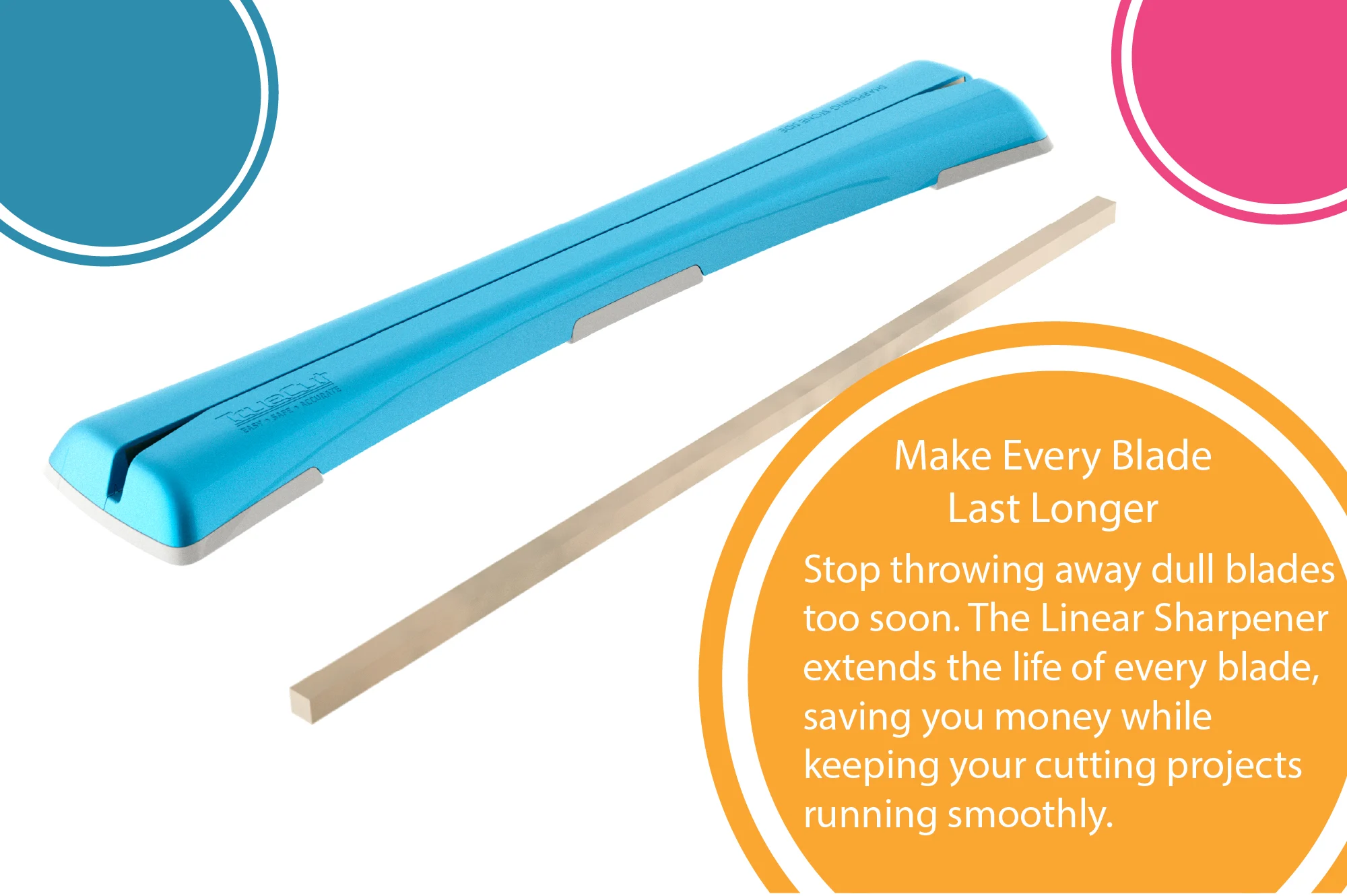 - Sharpens your blade without having to remove it from the cutter