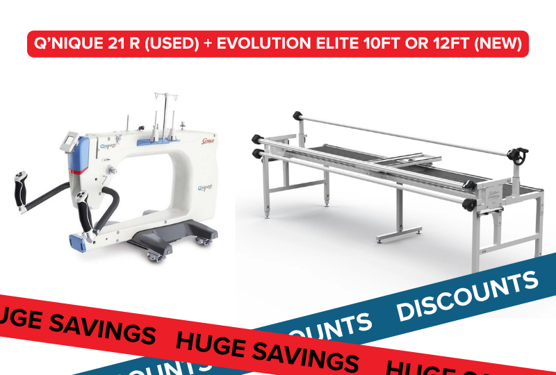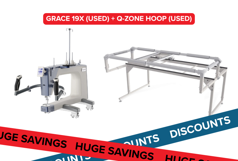 The Grace 19X (formerly the Q’nique 19X) is a solid, reliable quilting machine. No dramatic backstory here, just a great used machine on a sturdy frame that we took to a quilt show last year. It’s ready for its next adventure. Comes with a 1-year limited warranty supported by Grace Company Canada.