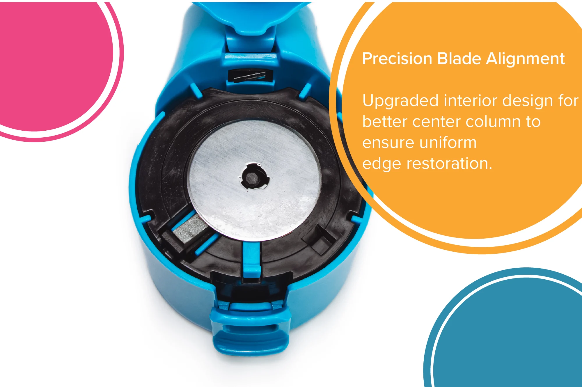 - Precision blade alignment for highest level of blade edge sharpness