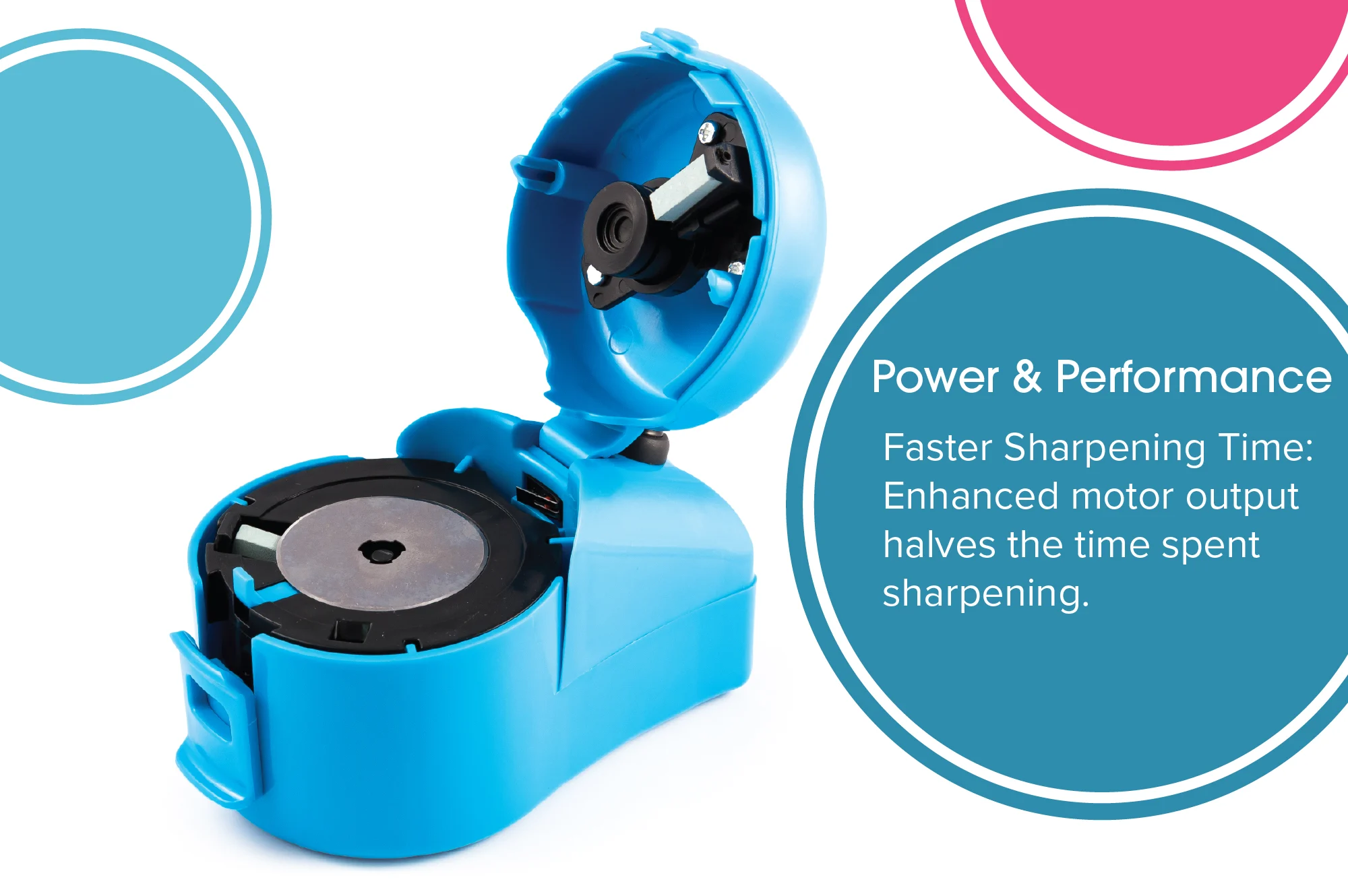 - Improved power output for quicker sharpening times
